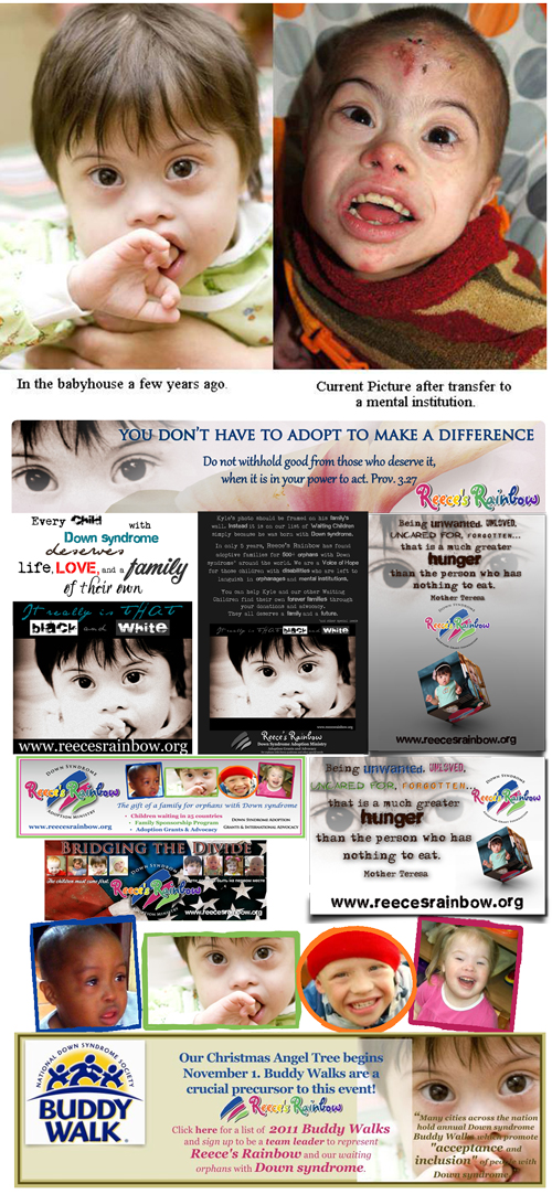 I made this collage of Kyle, his RR photo and the photo of him now on the Russian database of available children. I have included a sampling of the things I have used his photo on over the years, including a couple of graphics I am using soon as our new awareness buttons for people’s blogs and fb walls.